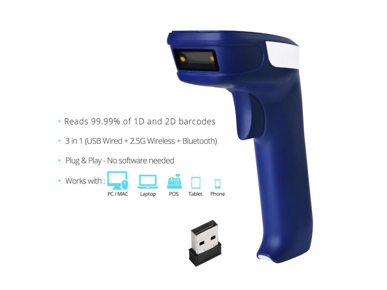 ScanAvenger 1D and 2D Portable Wireless Bluetooth Barcode Scanner: 3-in-1 - Cordless, Rechargeable Scan Gun for Inventory Management - Wireless, Handheld, USB Bar Code/QR Code Reader - Hand Scanner