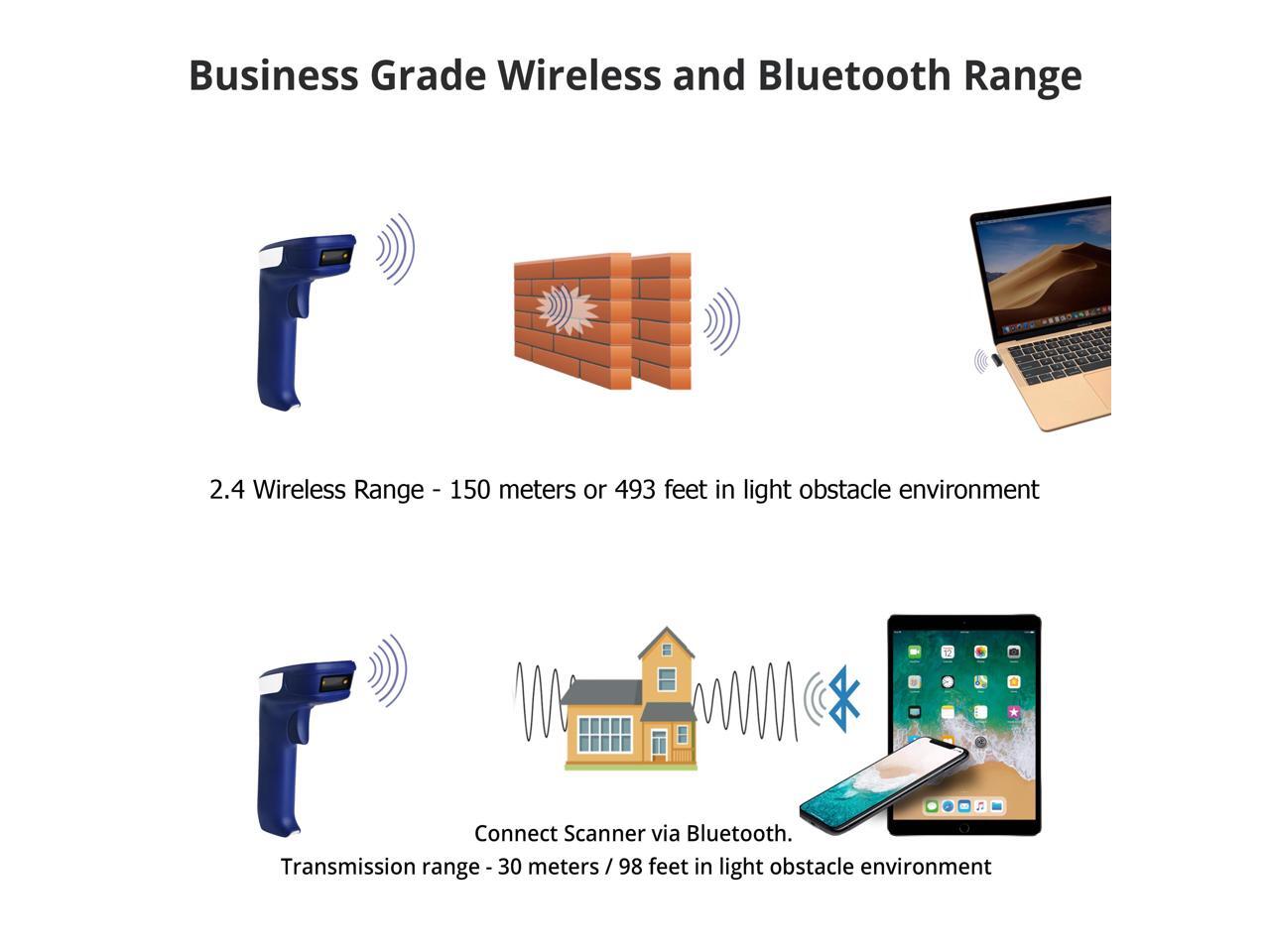 TRANSMISSION RANGE: This linear barcode scanner has a transmission range of up to 493 feet in an obstacle-free environment and around 98 ft in environments with medium-density obstacles. The transmission speed can be adjusted in order to scan faster.