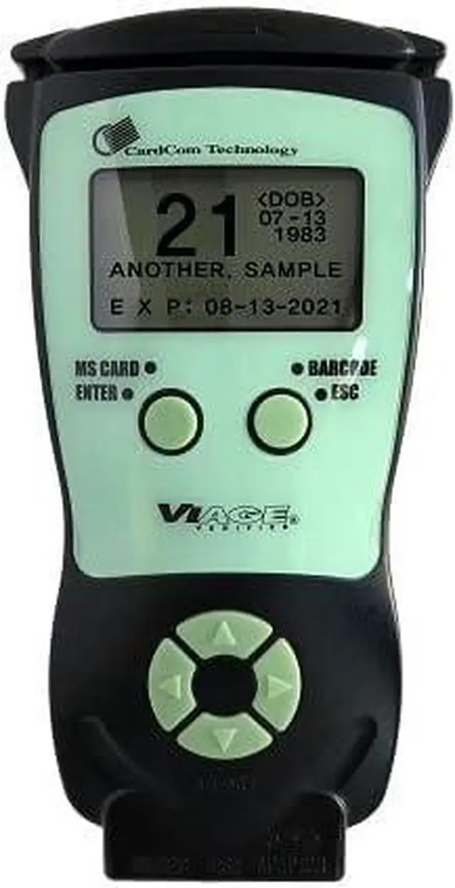 The CAV3200 ID Scanner reads all identification and driver's license cards issued in the U.S. and Canada and instantly verifies the Age and Expiration status of the card holder. For any industry serving minors, the CAV3200 is an essential tool for a comprehensive ID checking policy so you can work smarter not harder. The device is compact, portable, stand alone, requires no user training, and eliminates the human error. Free ID updates and compliance software provides peace of mind for businesses that need to protect their license. No subscriptions or fees are required. The CAV3200 ID Scanner comes standard with all accessories, software, and ID udpates.