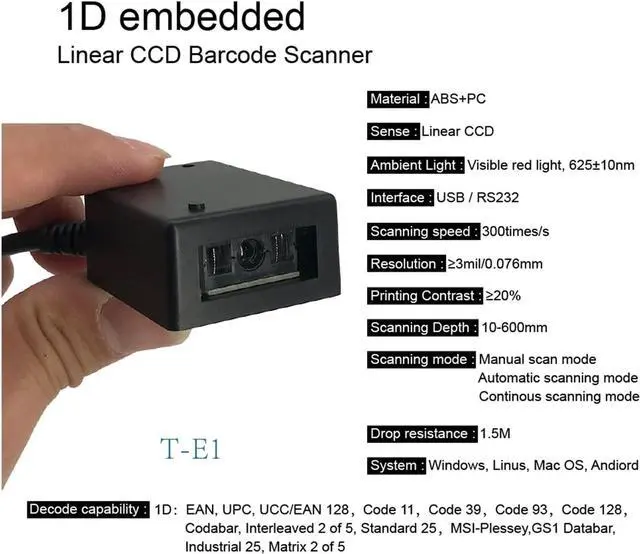 Can read extra barcodes: EAN13 + 2 or + 5; UPC-A + 2 or + 5