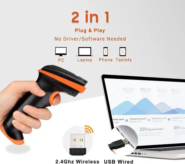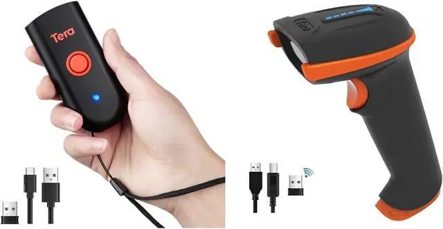 Tera Barcode Scanner Wireless and Wired with Battery Level Indicator 1D 2D QR Digital Printed Bar Code Reader Cordless Handheld Barcode Scanner Compact Plug and Play Model D5100