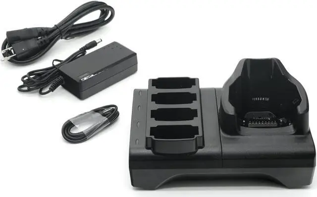 This 4-slot charging suit is suitable for zebra MC9300, MC930B-G series barcode scanners. It allows the MC9300 MC930B-G device and four batteries to be charged simultaneously, which saves you charging time. The device only requires an adapter save space and cluttered wires.