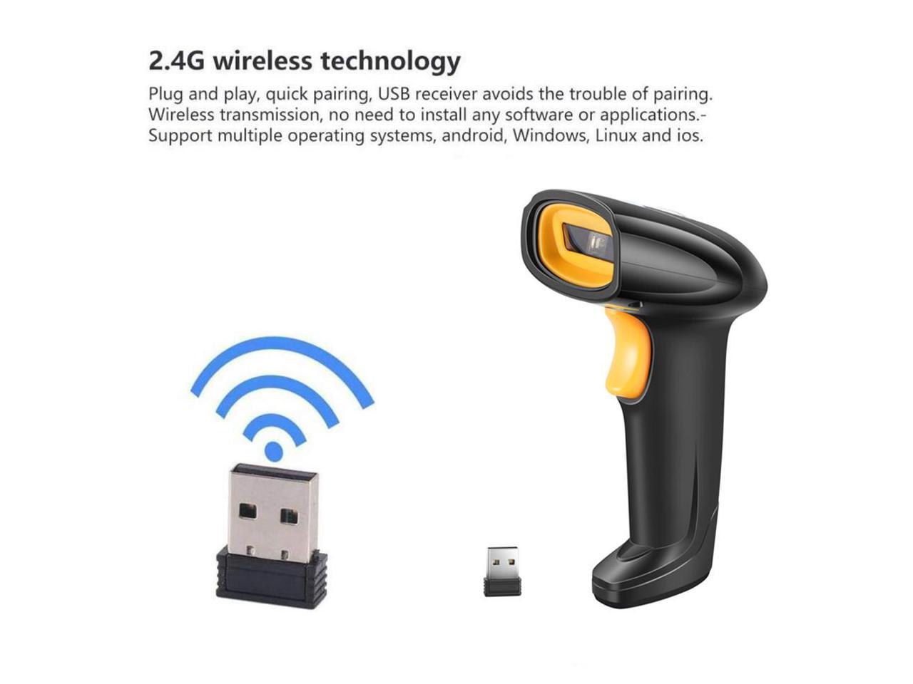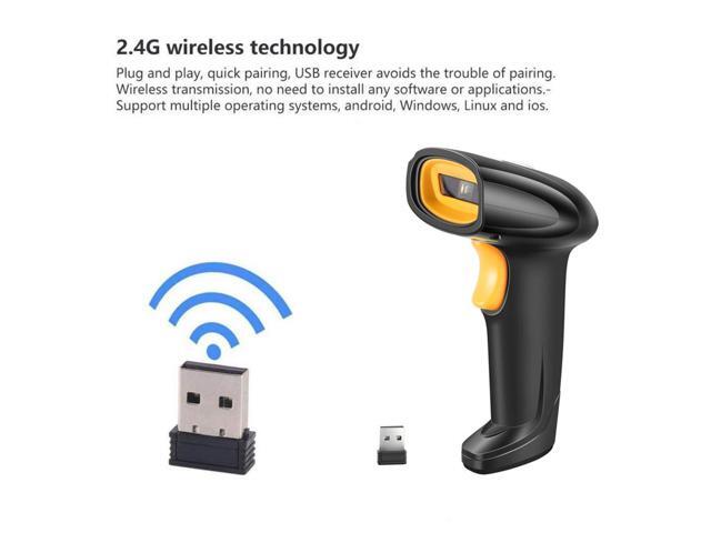 2.4G Wireless Handheld USB Barcode Laser Scanner 1D/2D Automatic QR Code Reader with Stand Connect PC, CCD Work with Windows, Mac Support Rebrand