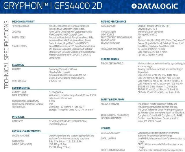 • Data,log,ic GFS4450 ndustrial Fixed Mount 1D 2D IBarco,de Scann,er W/ RS232 Cable
