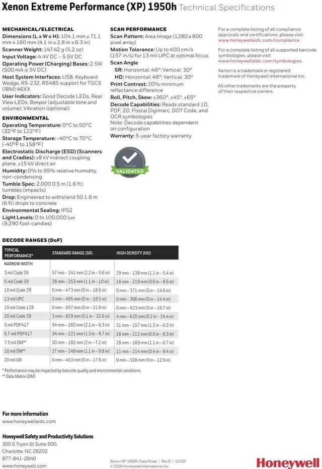 Honey,well Xenon 1950H / 1900H High Density Bar,code Scan,ner 1950HHD-5USB-N NIB