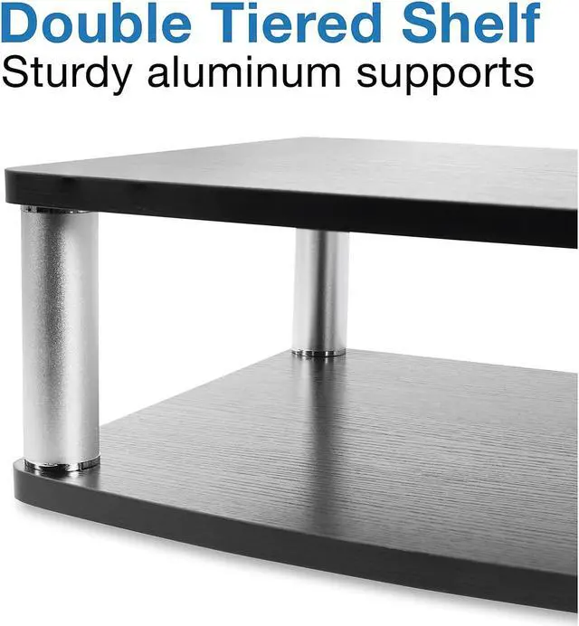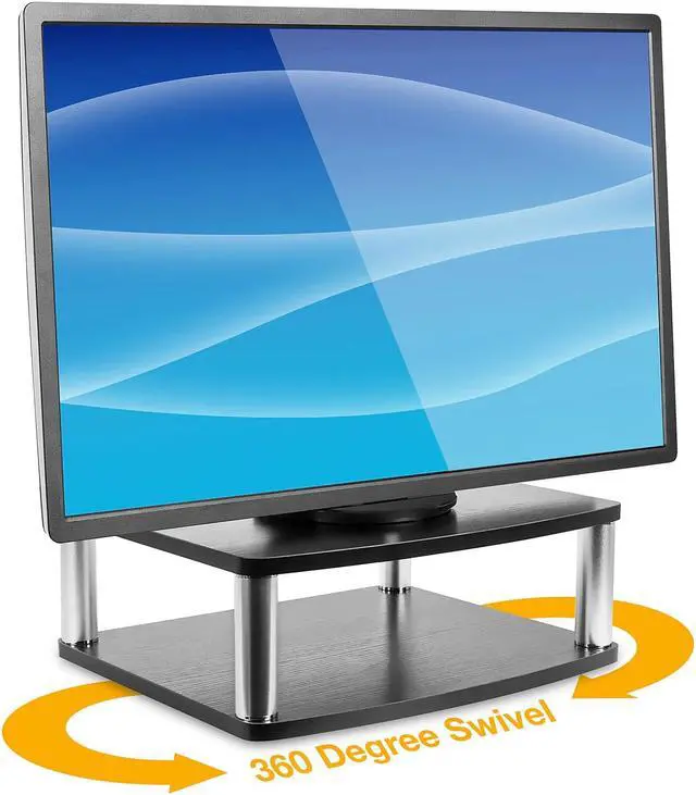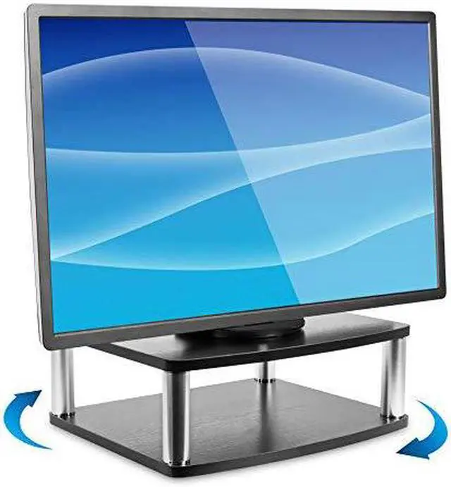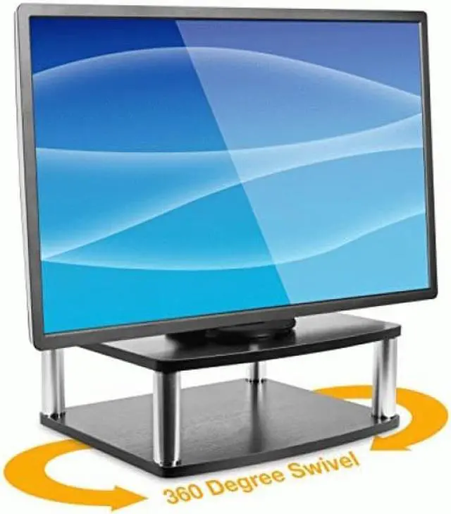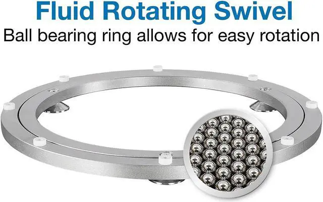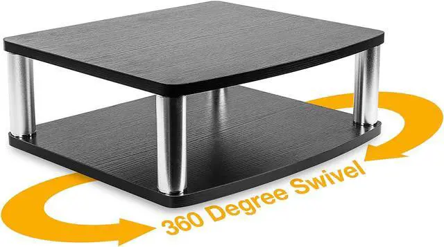 Get the perfect solution to organizing your TV and its accompanying DVD or Bluray player with this TV turntable stand! It features two platforms - the top for your TV, and the bottom for your games, accessories, record player or other AV components. The stand can hold up to 42 inch LED, LCD, and Plasma flat panel tv's with a weight capacity of 88 lbs. Made out of wood composite, it's black color will match any room as a classy addition to your decor. Watch movies from any angle with the 360 degree rotational capability, built with a smooth turning aluminum alloy ball-bearing base with protective, non-slip cushioned feet to prevent scratches on the surface of any furniture.