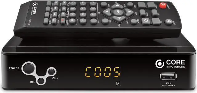 The Core Innovations CTCB105 Over the Air Digital TV Converter and DVR Box converts digital signals to your analog TV, so you can enjoy free HDTV broadcasts from your favorite channels. Compatible with all TV brands, simply connect this box to your TV and antenna, and youll be able to watch live programs or record shows for enjoyment at your convenience. Plug in a USB drive to view photos, play music or watch movies and recorded content. Parental controls let you take charge of the content your family can access; simply block certain channels by setting a password. This box is the perfect solution to upgrade your home entertainment system.