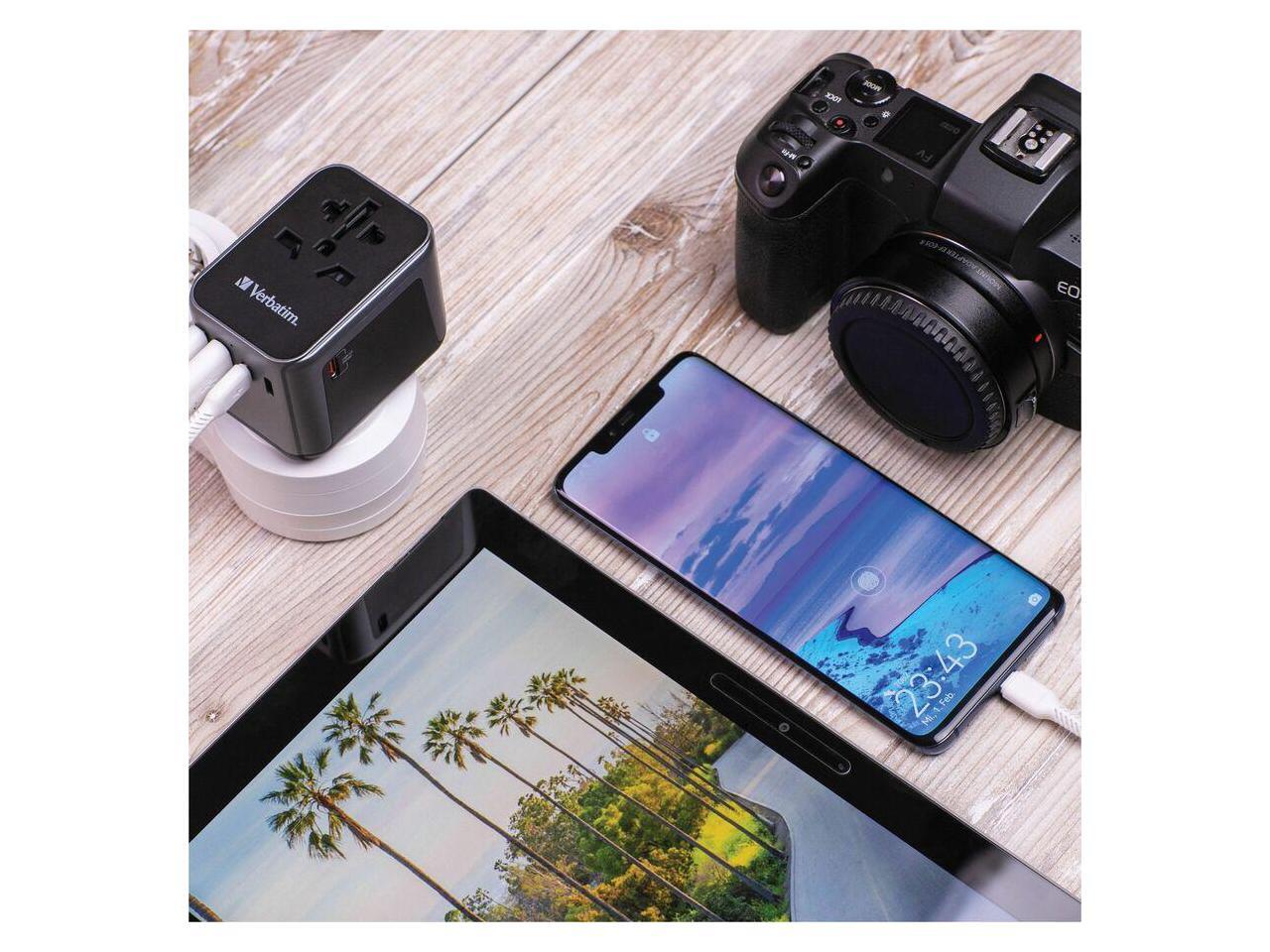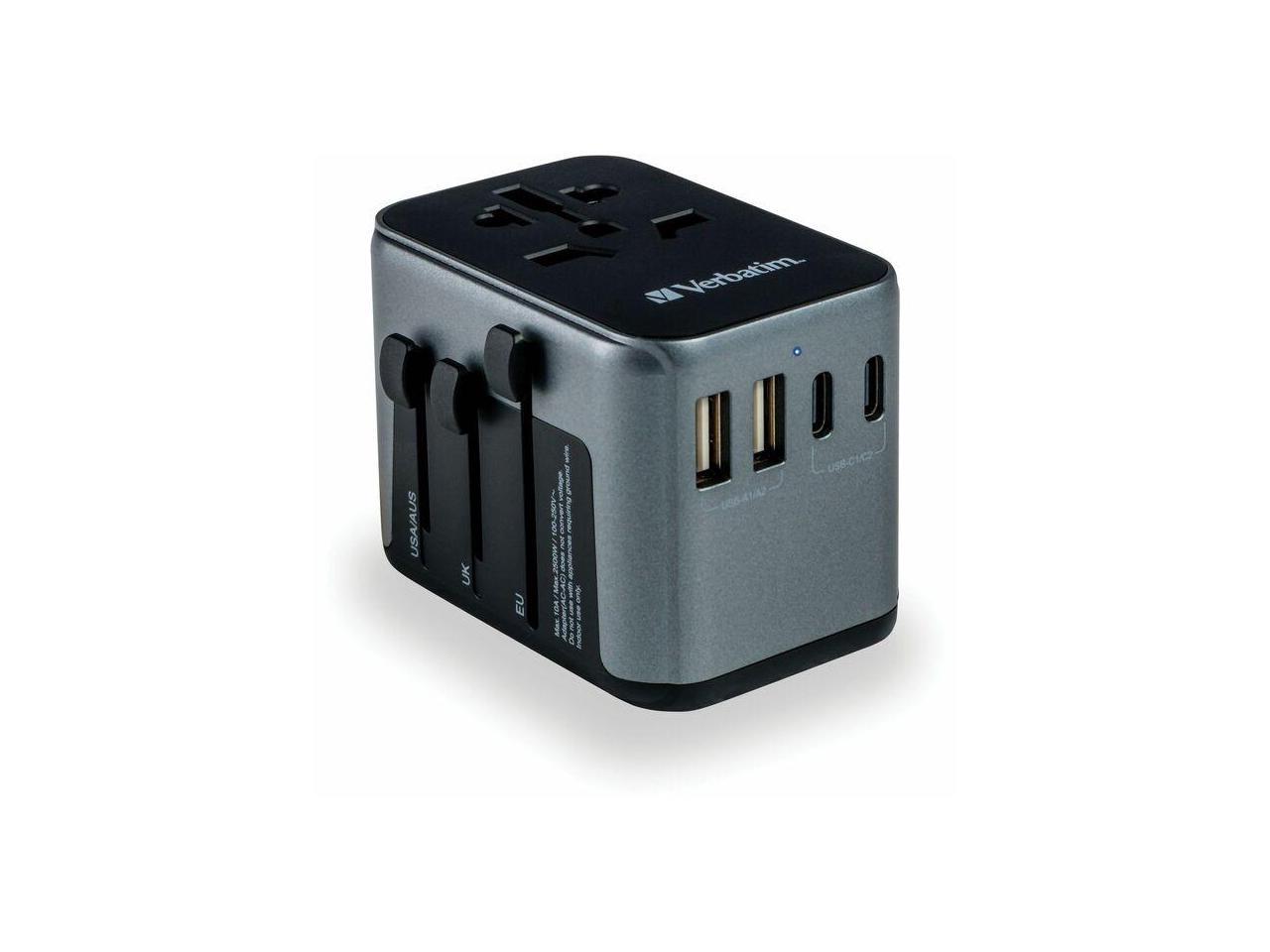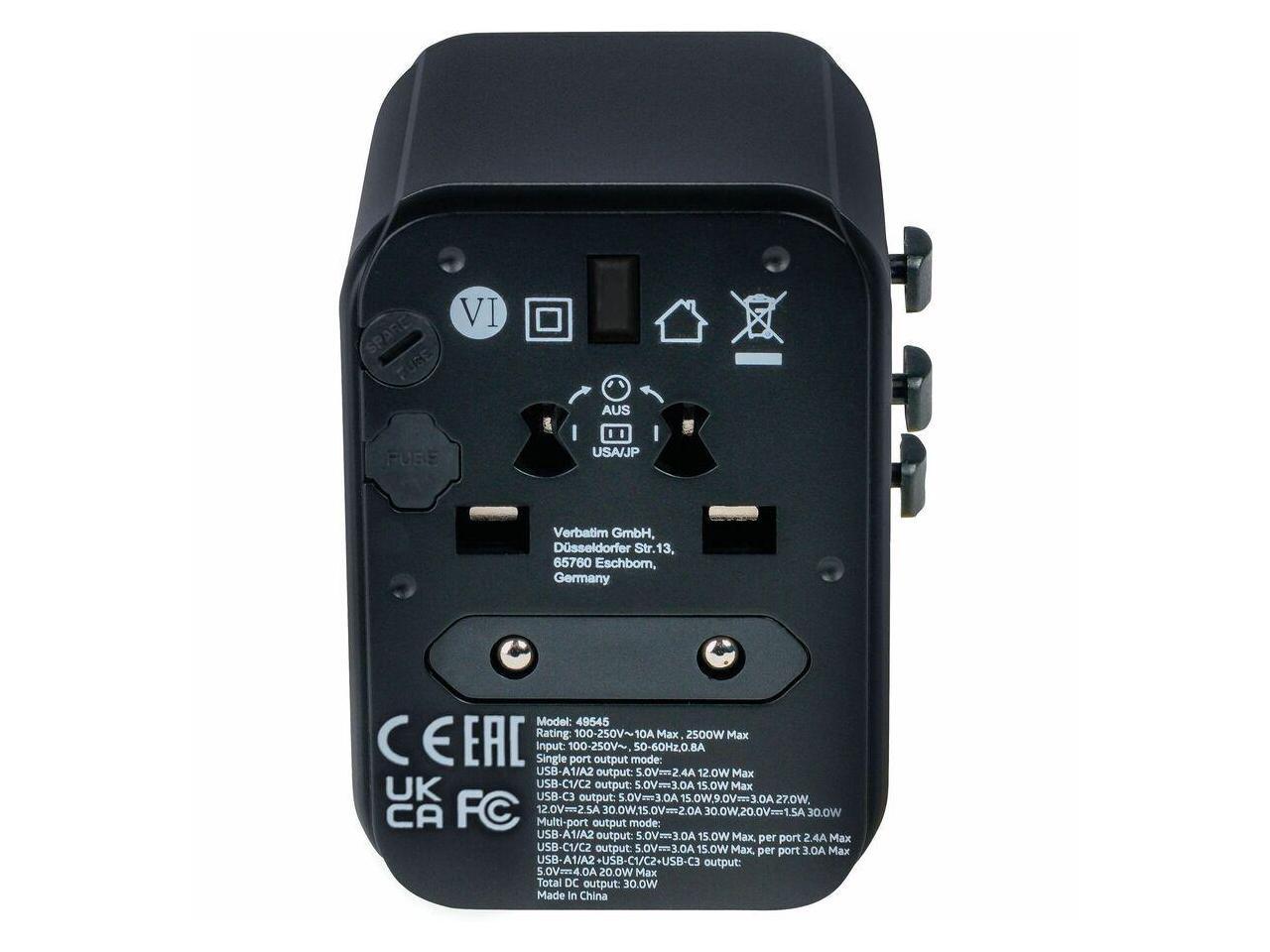Verbatim UTA-03 Universal Travel Adapter 30W - USB -C, USB-A - 120 V AC, 230 V AC Input - 5 V DC, 9 V DC, 12 V DC, 15 V DC, 20 V DC Output - 3 A