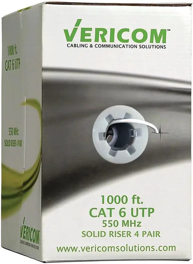 The Vericom TCTMBW6U01444 1000' CAT-6 UTP Solid Riser CMR Cable, White, is ideal for 10 Gigabit Ethernet networks and provides dependable data transfer. Get the Vericom TCTMBW6U01444 CAT-6 Cable to ensure reliable Ethernet network connections between your system and routers, hubs or switches. This networking cable features bare ends to which you can fit modular connectors for convenient linking of devic es. It has a durable and good-quality PVC jacket that preserves the integrity of the high-quality copper conductor. The Vericom TCTMBW6U01444 1000' CAT-6 UTP Solid Riser CMR Cable, White, is ideal for 10 Gigabit Ethernet networks and provides dependable data transfer.