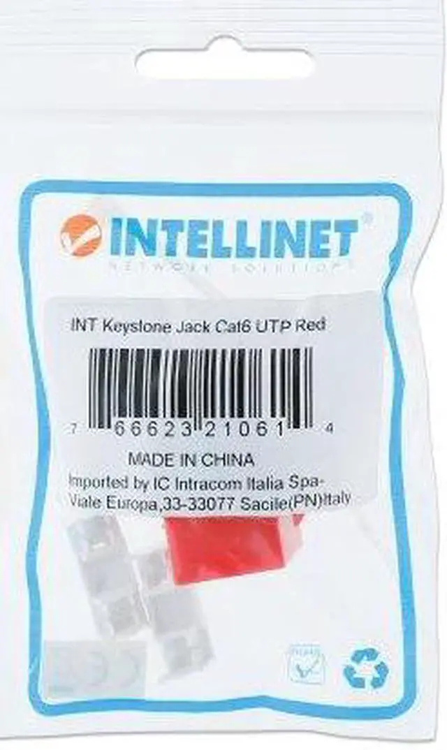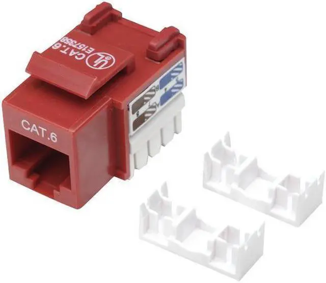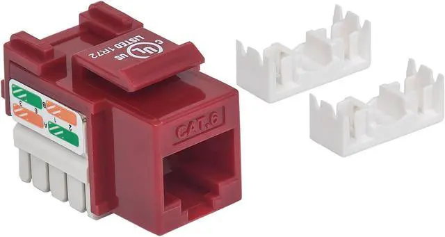 Intellinet Cat6 UTP Punch-Down Keystone Jack, Red, for Solid and Stranded Wire, Gold-plated Contacts
