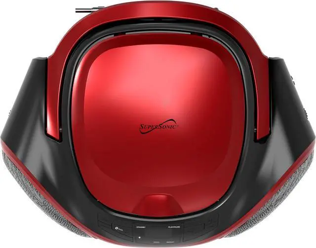 Upgrade your audio experience with the Supersonic SC-726BT Portable CD Player. Perfect for home, office, and on-the-go listening, this lightweight boombox features CD playback, Bluetooth streaming, AM/FM radio, and built-in speakers. It includes a carry handle for easy transport.