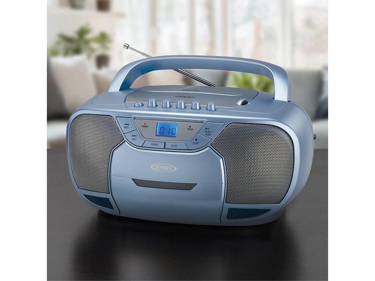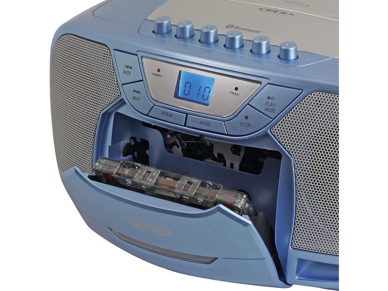 jensen cd-590-bl portable bluetooth stereo mp3 cd cassette player/recorder with am/fm radio
