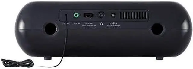 Built-in battery for station presets backup & power outages. DC input. Aux input. Headphone output. USB A type socket. Includes infrared remote