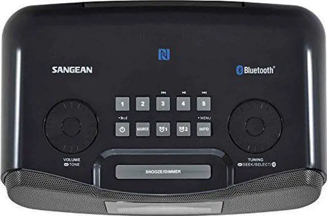 The Sangean Digital AM/FM-RDS/Bluetooth Clock Radio with USB Charger has worry-free battery backup in case of power outages. Built-in Bluetooth Version 4.1 Class II and NFC technology allow for easy pairing and connecting to your device with a simple touch of your device to the clock radio. It also delivers powerful audio with a ported bass tube specially designed for more bass and loudness compensation that gives better bass response characteristics and helps tit deliver sound beyond its size. Bass, treble, and balance controls let you further adjust the sound to your liking..