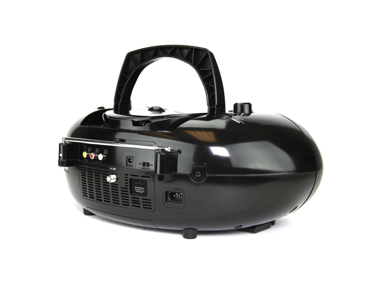 - Boombox with TV & DVD Player -- Enjoy TV and all your DVD movies anywhere on the built-in 7” LCD screen!