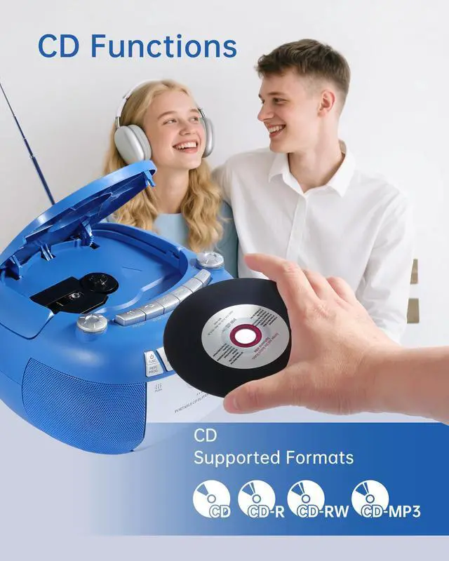 Experience total musical freedom with our versatile portable CD player boombox. Featuring advanced Bluetooth 5.3 technology, you can instantly connect your smartphone or tablet for seamless wireless music streaming. Have your favorite playlists on a flash drive? The built-in boombox with USB port has you covered for instant MP3 playback. From the kitchen to the dorm room, this bluetooth boombox combines all the ways you listen to music into one compact and stylish device.