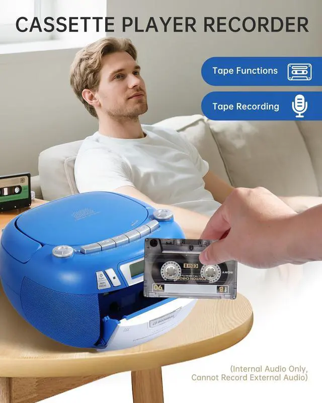 Dust off your treasured mixtapes! Our boombox with cassette player not only plays your classic tapes but lets you create new ones. Use the built-in cassette recorder function to capture audio directly from the radio, a CD, or the USB port (records internal audio only). This tape player makes a perfect gift for enthusiasts and is a fantastic way to relive your favorite memories. The ultimate retro boombox radio cassette player for your home, workshop, or garage.