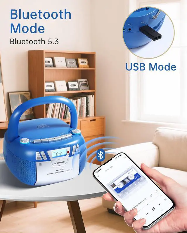 Your All-in-One Music Hub: Bluetooth 5.3, USB, and CD Player Boombox