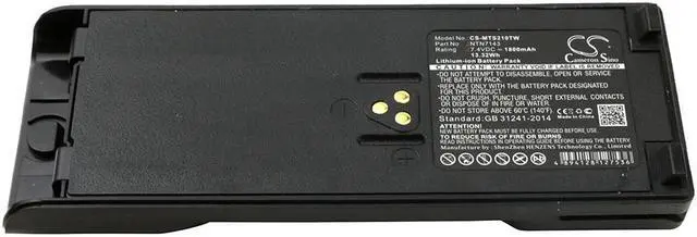 Two-Way Radio Battery for Motorola FuG11b NTN7143 NTN7143A NTN7143B NTN7143CR Compatible with the following devices GP1200, GP2010, GP2013, GP900, HAT100, HT1000, HT6000, JT1000, MT2000, MT2100, MTS2000, MTS2010, MTS2013, MTX8000, MTX9000, MTZ2000, PTX1200 Compatible with Battery Part Numbers FuG11b, NTN7143, NTN7143A, NTN7143B, NTN7143CR, NTN7143R, NTN7144, NTN7144A, NTN7144B, NTN7144CR, WPNN4013 Capacity: 7.4V 1800mAh / 13.32Wh Dimensions: 155.20 x 59.30 x 33.90 mm Condition: Brand New, 100% OEM compatible! Type: Li-ion Quantity: 1Color: Black