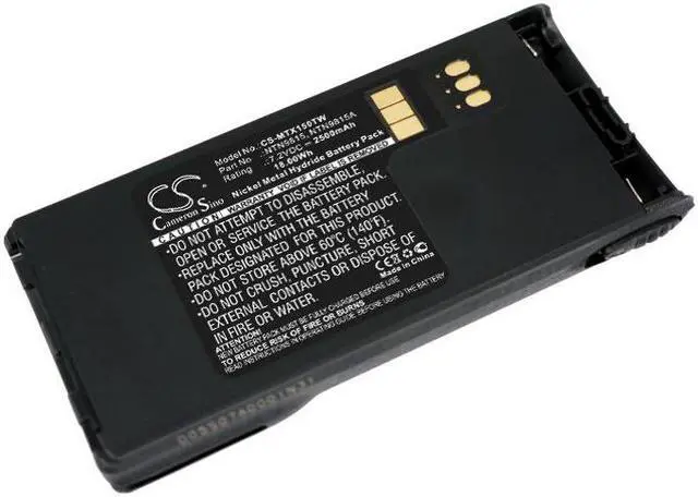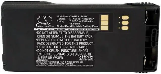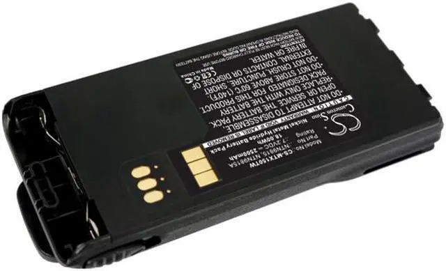 Two-Way Radio Battery for Motorola NNTN7335 NNTN7554 NNTN9858 NTN9815 NTN9815A Compatible with the following devices MT1500, PR1500, XTS1500, XTS2500 Compatible with Battery Part Numbers NNTN7335, NNTN7554, NNTN9858, NTN9815, NTN9815A, NTN9851AR, NTN9851B Capacity: 7.2V 2500mAh / 18.00Wh Dimensions: 123.32 x 60.00 x 36.70mm Condition: Brand New, 100% OEM compatible! Type: Ni-MH Quantity: 1Color: Black