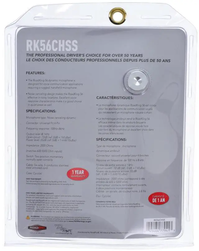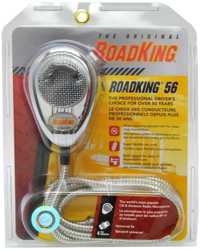 RoadKing RK56CHSS 4-Pin Dynamic Noise Canceling CB Microphone Chrome & Chrome Cord