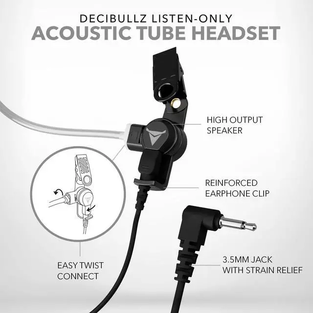 High Quality Speaker Output: Decibullz listen only radio headset provides a premium clear sound through the clear acoustic tube even in traditionally loud environments. This listen only headset helps to provide a perfect clear long range distance communication.