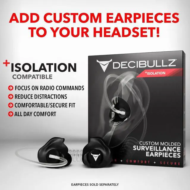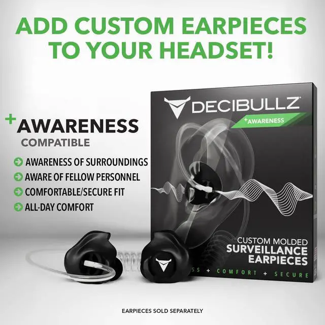 Customizable Upgrades: Decibullz listen only headpiece comes with standard silicone mushroom earpiece adapter. If you are seeking a customizable fitted earpiece for a profession Decibullz had a wide arrange of customizable moldable fitted earpieces the seamlessly concept to this listen only headset. Where you seek for an awareness compatibility or isolation there is an earplug that works for you.