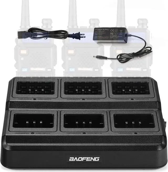 [Compatible Models] Work well for UV-5R, UV-5R+ Plus, UV-5RTP, BF-F8HP, UV-5X3 etc. Charge 6 radios or 6 batteries at the same time. Full charge for 1800mAh