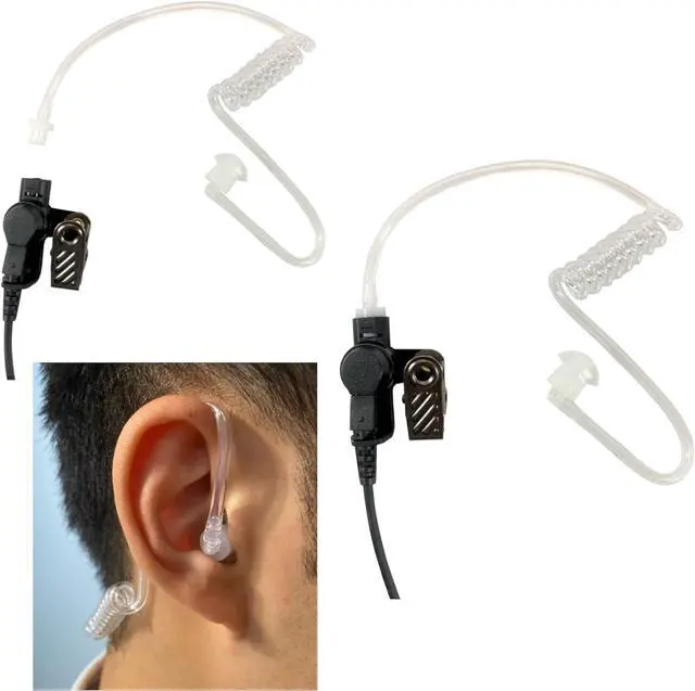 Push-To-Talk (PTT) mic with Single Replaceable Clear Coil Listening Tube, Package