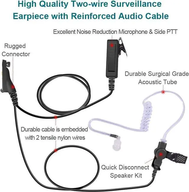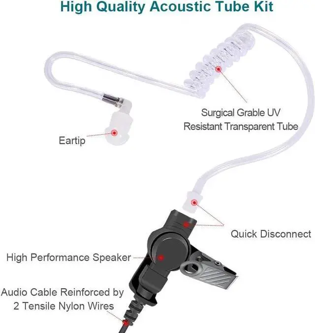 Transparent acoustic tube delivers clear sound even in noisy places, showing a high-quality sound experience. Mushroom earbud fits snugly in your ear and keeps your conversation private