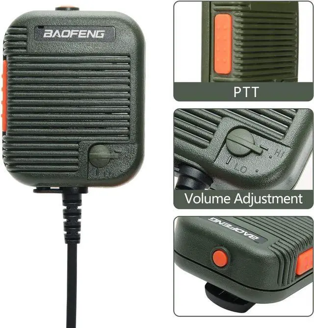 With Volume adjustment button: The difference between this speaker microphone and the common speaker mic is that it can adjust the volume, you can adjust the level of the sound on the hand microphone, which is more convenient to use.