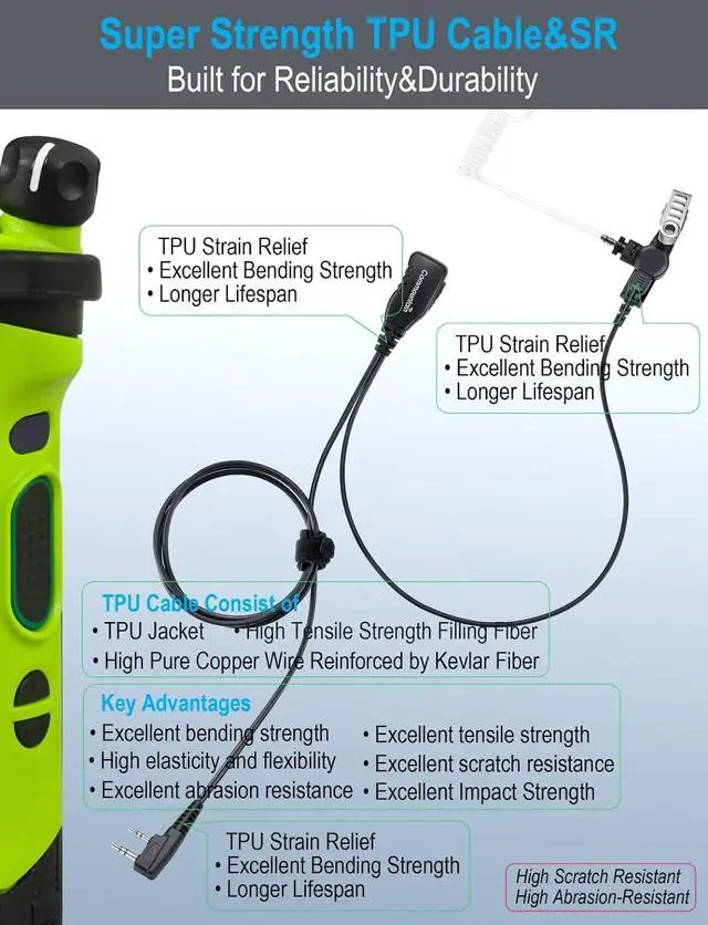 Clear Sound Transmission: With professional acoustic tube module, high quality micro speaker, noise reduction microphone, high purity copper wire cable and anti-Interference circuit design and our great assembly skills, this earpiece ensure sound to be received and transmitted clearly even in loud environment.