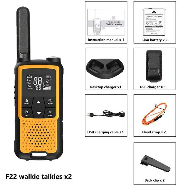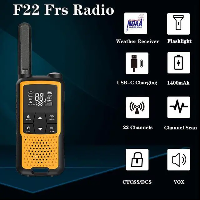 Multi-Function Walkie TalkieThis walkie talkies is easy to use. has 22 FRS channels and 50 CTCSS and 105 CDCSS.