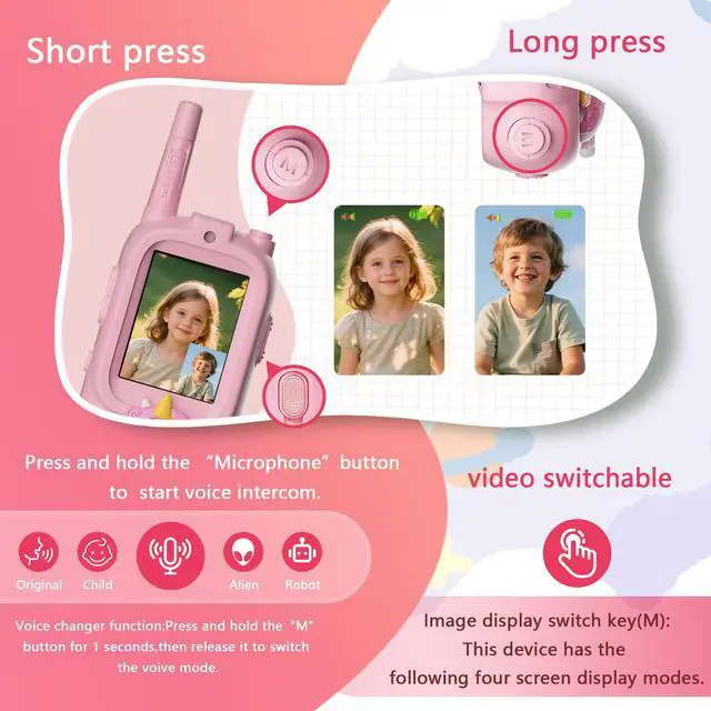 The Video Walkie Talkies for Kids feature built-in HD cameras that provide clear video quality for real-time video calls between kids.