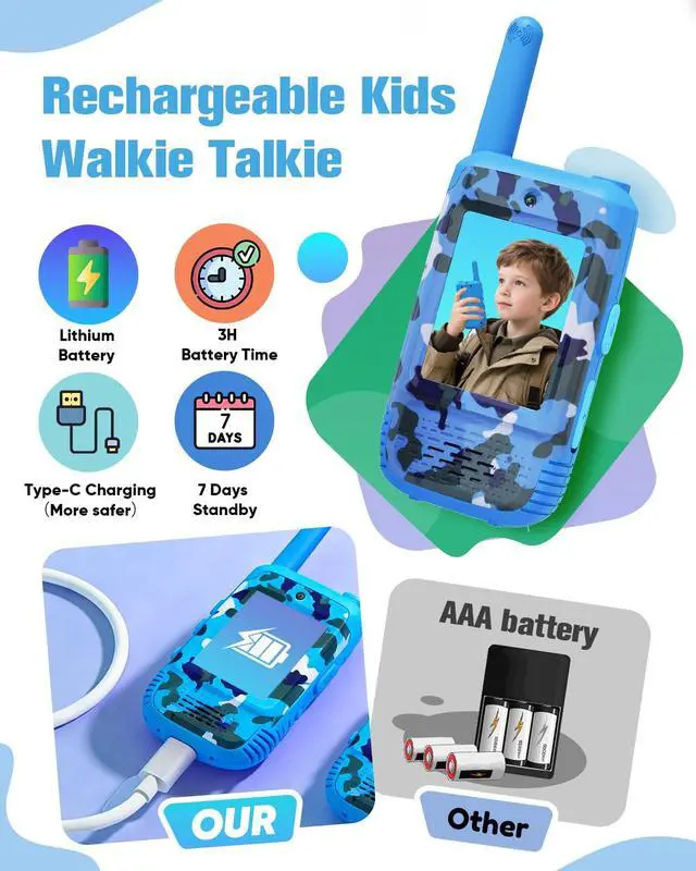 Simple for Kids, Reassuring for Parents: Ready to play, right out of the box! No apps, Wi-Fi, or complicated setupjust press one button and go. These kids walkie talkies use 1v1 single-channel technology for a clear, interference-free connection every time. The built-in rechargeable battery delivers hours of talk time, and the lightweight, ergonomic design fits small hands perfectly for extended play.