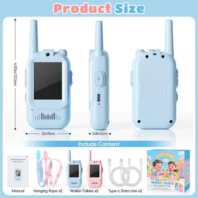 Gift-Ready 2 Pack (Blue + Pink): Each set includes 1 blue and 1 pink kids walkie talkieperfect for siblings or friends to play together. A fun choice for birthdays, Christmas, or holiday gifts, these walkie-talkies for kids keep boys and girls ages 310 connected and entertained