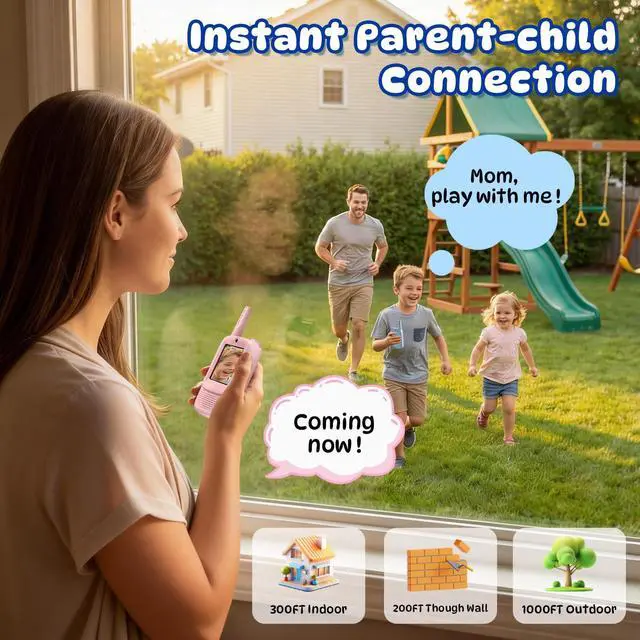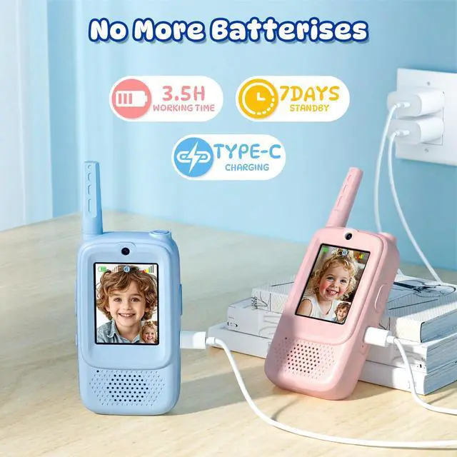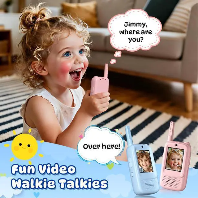 Kids' Video Walkie Talkie Safe, Instant FunGo beyond voice-only toys. Real-time video chat on a 2-inch IPS screen lets kids share adventures face-to-face. With a secure, closed network (no Wi-Fi required), kids can enjoy up to 1000ft range outdoors and 300ft indoors. Its the perfect way to keep them connected safely, while turning every game into a joyful, interactive experience.