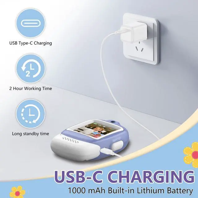Type-C Rechargeable: This kids video walkie talkies has a 1000mAh built-in lithium battery with up to two hours of battery life and long standby time. It can be charged directly via the Type-C port, making it very convenient to carry around