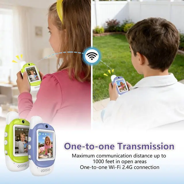 Long-Distance Indoor and Outdoor: The kids video walkie talkies has a transmission range of up to 300 meters in open outdoor environments and up to 100 meters indoors, covering a wide range of scenarios