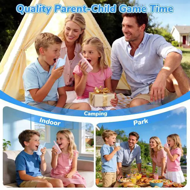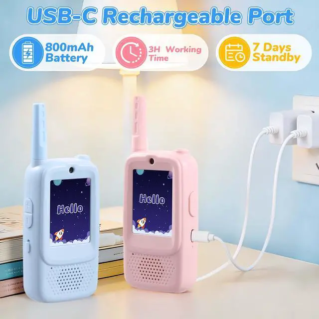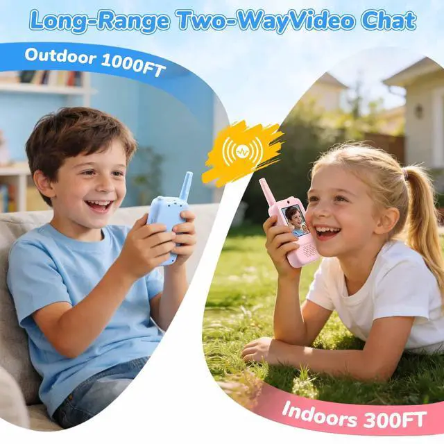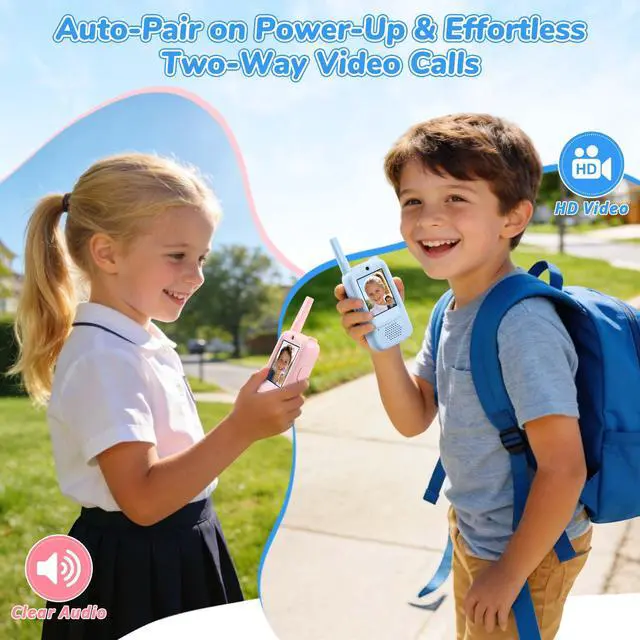 [Real-Time Video & Voice Chat Unlike Traditional Walkie Talkies] Unlike ordinary sound-only walkie talkies for kids rechargeable, our upgraded version Walkie Talkie for Kids with Video features a built-in HD camera and display screen for face-to-face video calls. Kids can see each other while chatting during hide-and-seek, backyard adventures, or room-to-room play. No complex setup requiredjust turn on and connect, making it perfect for 3-12 year old to share fun in real time