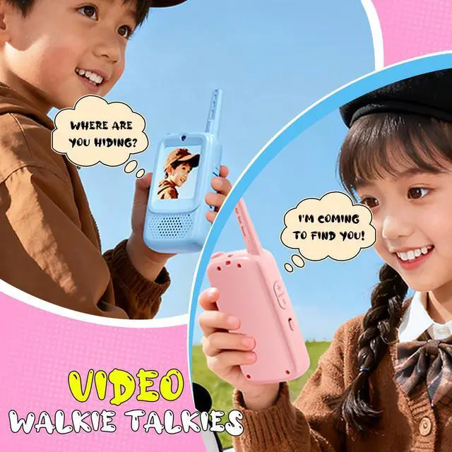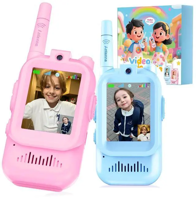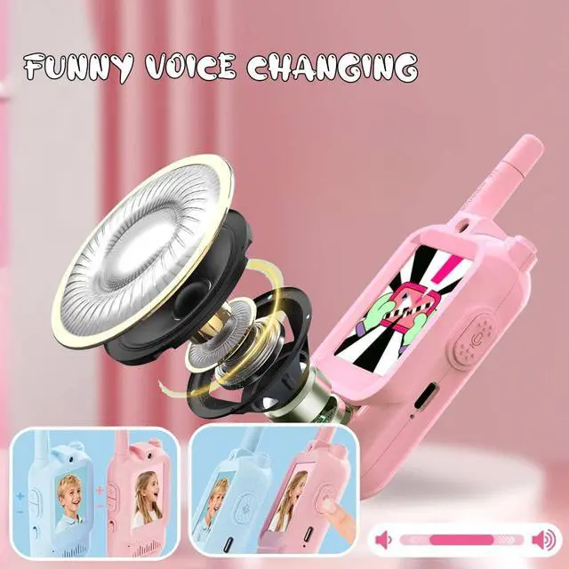 Video Walkie Talkies for Kids with Screen Display, 2 Pack Rechargeable Walkie Talkies with HD Camera, Kids Walkies Talkie Toys for Ages 3-12, Voice Changer & Real-Time Video Chat (Pink & Blue)
