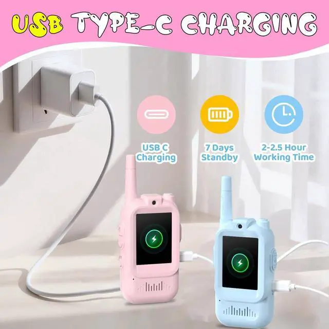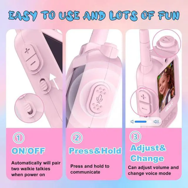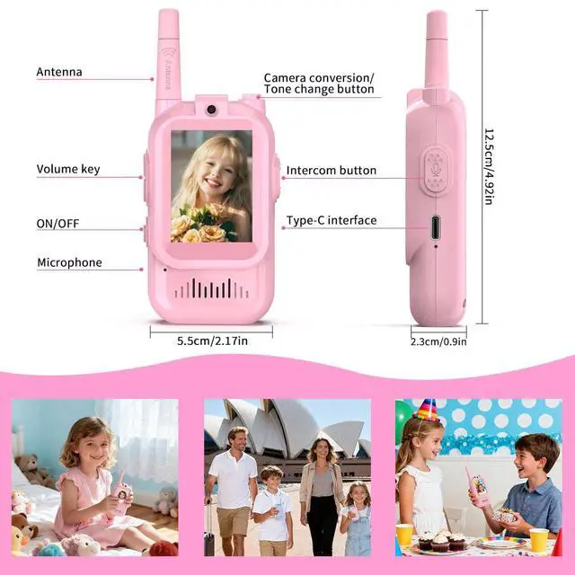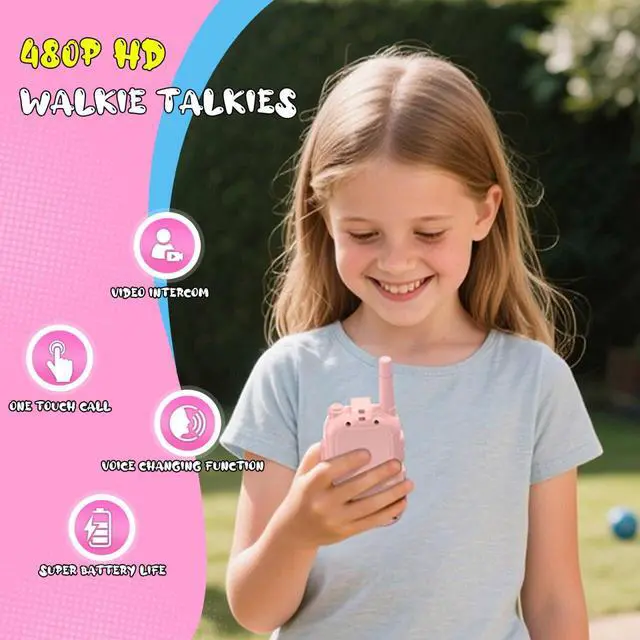 Easy to carry, the walkie talkie adopts ergonomic design, which can be comfortably placed in the hands of children. The simple one click button makes this toy easy for girls aged 3-12 to use.