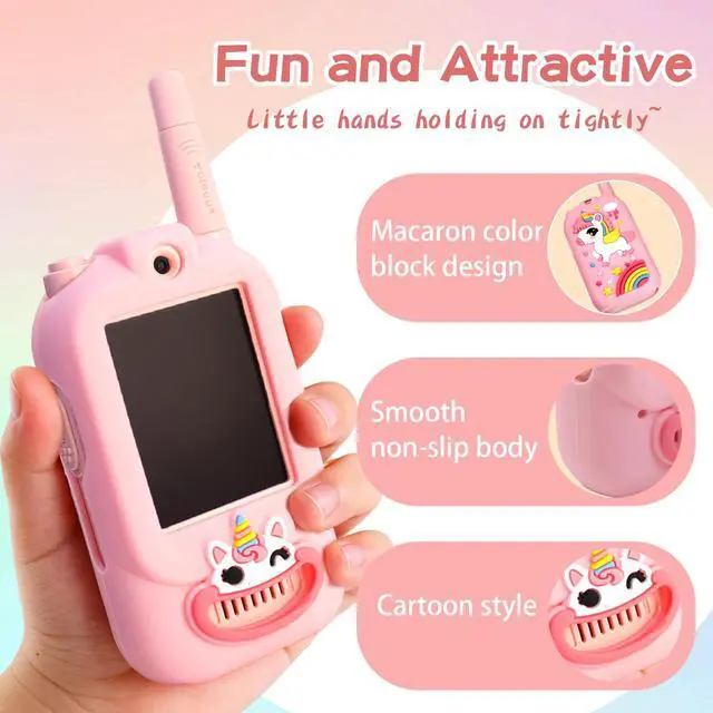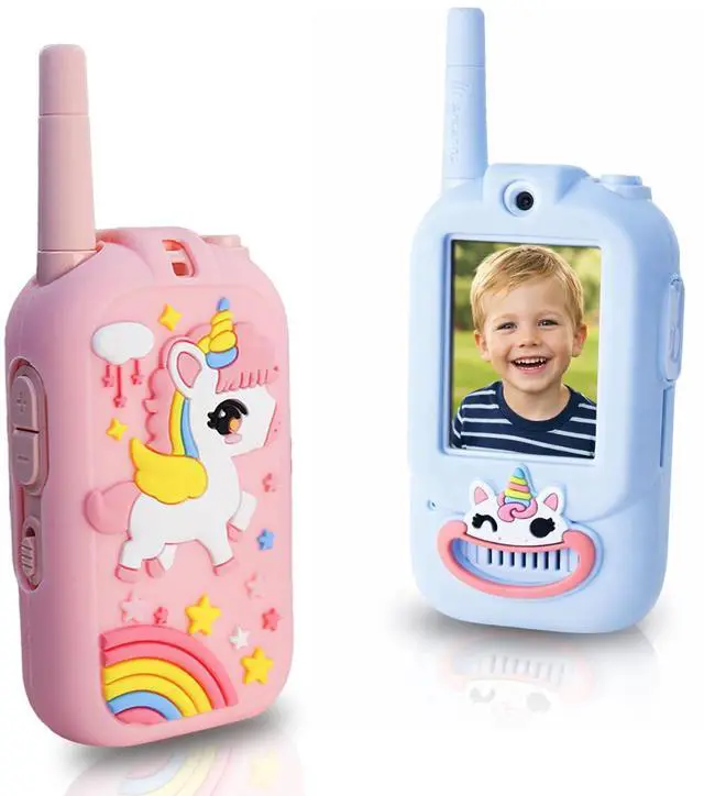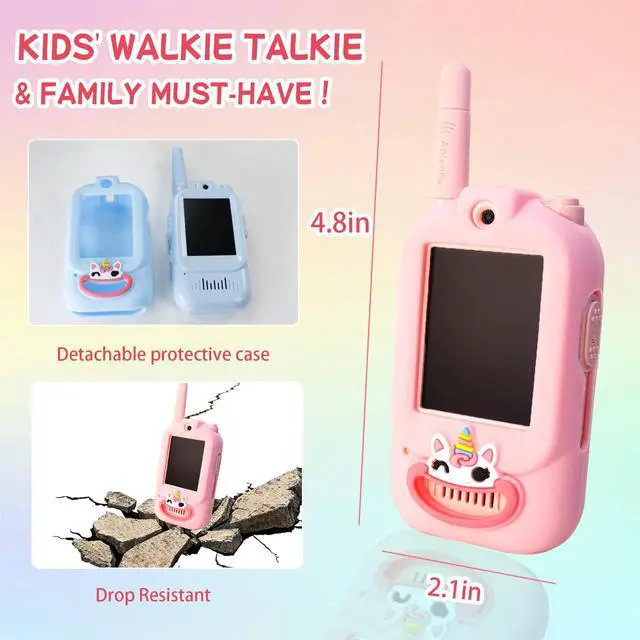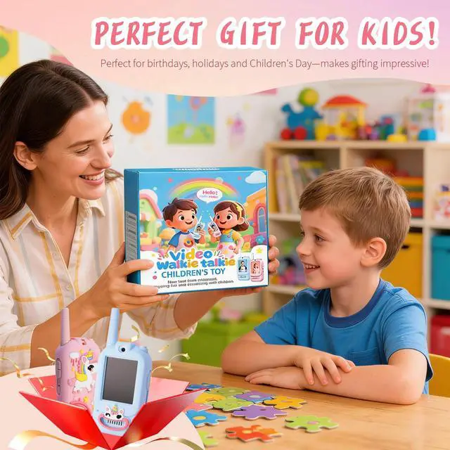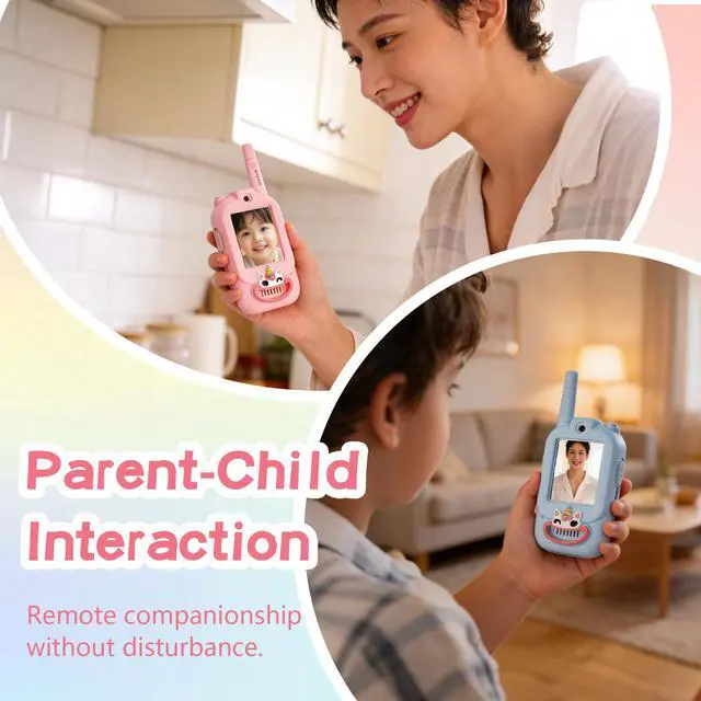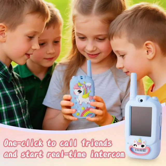 Real-Time Video Walkie Talkies for KidsThese are not ordinary walkie talkies. With a built-in video screen, kids can see and talk to each other at the same time, making play more interactive and exciting. Fun Voice Changer & Creative PlayMultiple voice effects and video modes turn every conversation into a mini performance. Perfect for pretend play, storytelling, and laughter-filled moments. Safe & Private CommunicationSecure one-on-one pairing ensures only connected devices communicate with each other. No interference, no distractionsjust safe playtime. Lightweight & Easy for KidsDesigned for small hands, ultra-lightweight, rechargeable, and easy to operate. Ideal for indoor games, outdoor adventures, and family trips. A Gift Kids Truly LovePerfect for birthdays, Christmas, Easter, or any special occasion. Encourages imagination, bonding, and active play for boys and girls ages 312.