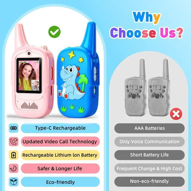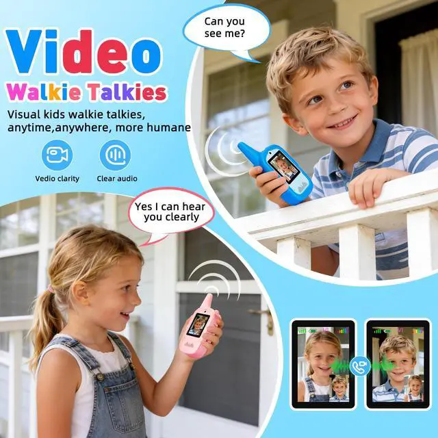 [Upgraded Video Walkie Talkies]: Unlike traditional walkie-talkies that only transmit sound, our upgraded version comes with video capabilities, allowing kids to see each other during conversations. This innovative feature makes communication more engaging and fun, creating a truly interactive experience for kids while they play.