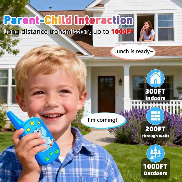 [User-Friendly Design]: Featuring simple buttons and an easy-to-use press-to-talk function, our walkie talkies are designed with young children in mind. Compact and lightweight, they comfortably fit in little hands. With an intuitive, one-channel setup, kids can start talking and playing without hassleperfect for ages 3 and up!