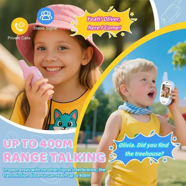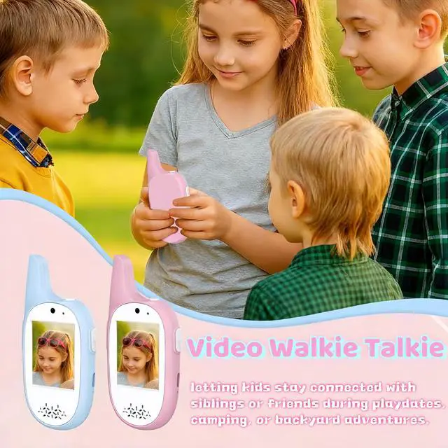 Real-time Video Walkie Talkies: Say goodbye to traditional kids walkie talkies that only transmit voice. Our upgraded kids video walkie talkies features a built-in HD screen and microphone for real-time video calls. The volume is adjustable in six levels. This video walkie talkies is ideal for outdoor play, camping, or park trips
