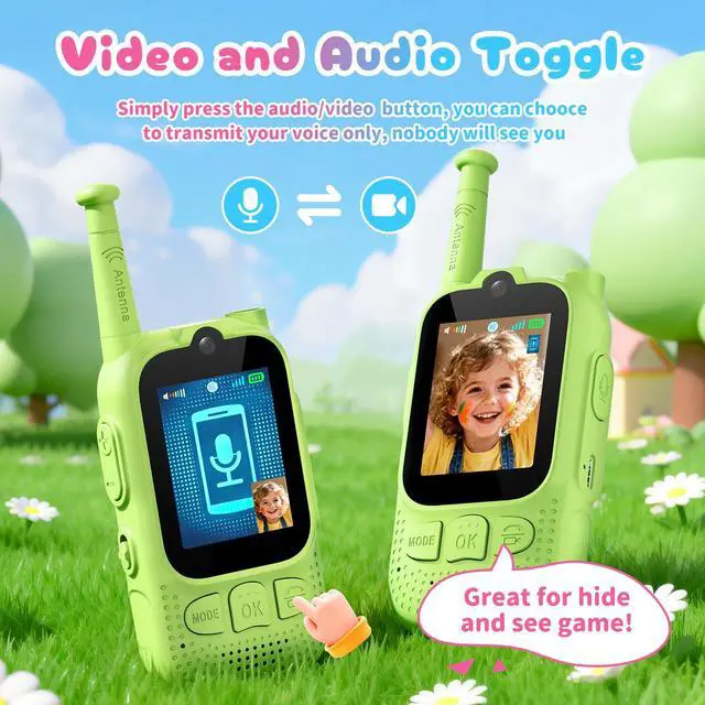 [Audio/Video Communication]: These 2-in-1 video and voice walkie talkies enhance not only video chat face-to-face in real time, buy also individual audio call, Imagining that you don't want the other person to see where you are or what you are doing, you can switch to voide mode, adding more fun in kids activities.
