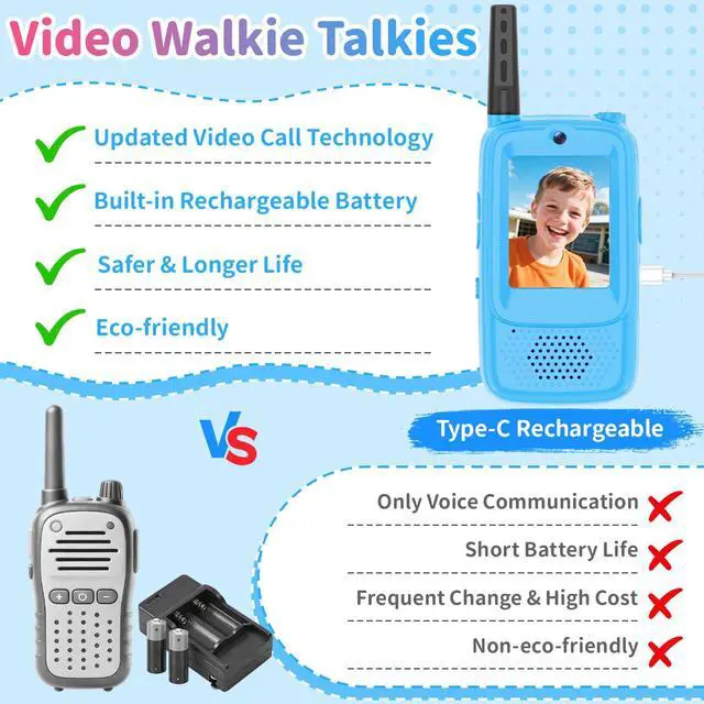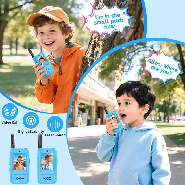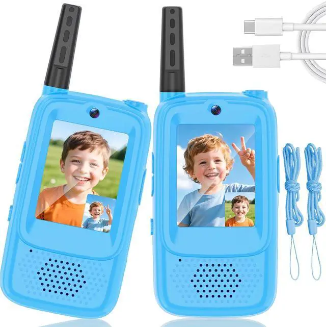 Video Walkie Talkies for Kids, 2 Pack Rechargeable Kids Walkie Talkies Long Range Outdoor Christmas Birthday Toddler Toys Gifts for 3-12 Year Old Boys Girls for Outside, Camping, Travel, Hiking, Blue