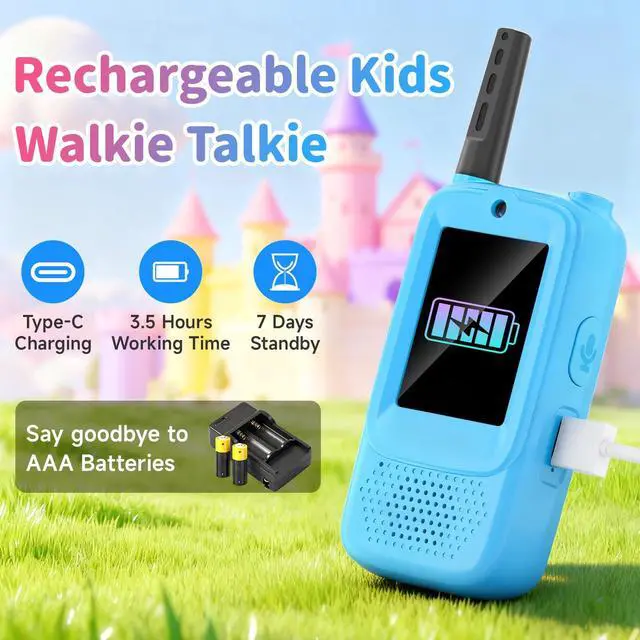 Eco-friendly & Rechargeable Walkie Talkies: Our toddler walkie talkies is made of safe, non-toxic, and sturdy materials. Its size is perfect for small hands and comes with two anti-loss lanyards for easy carrying. rechargeable walkie talkies allowing children to enjoy smooth calls anytime, anywhere. This walkie-talkie is the perfect companion for outdoor games, family hikes, or birthday parties.