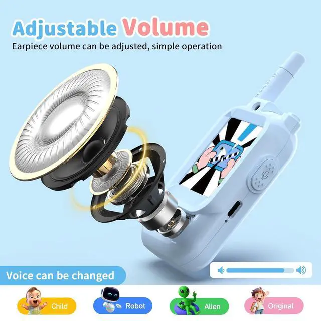 MAGIC VOICE CHANGERS & SELFIE CAMERA Spark creativity with built-in entertainment! Kids can switch between 4 hilarious voice effects (Robot, Lady, etc.) and use cool video filters. Perfect toys for boys and girls ages 3-12, these aren't just tools but interactive games that turn every conversation into a playful mini-show.